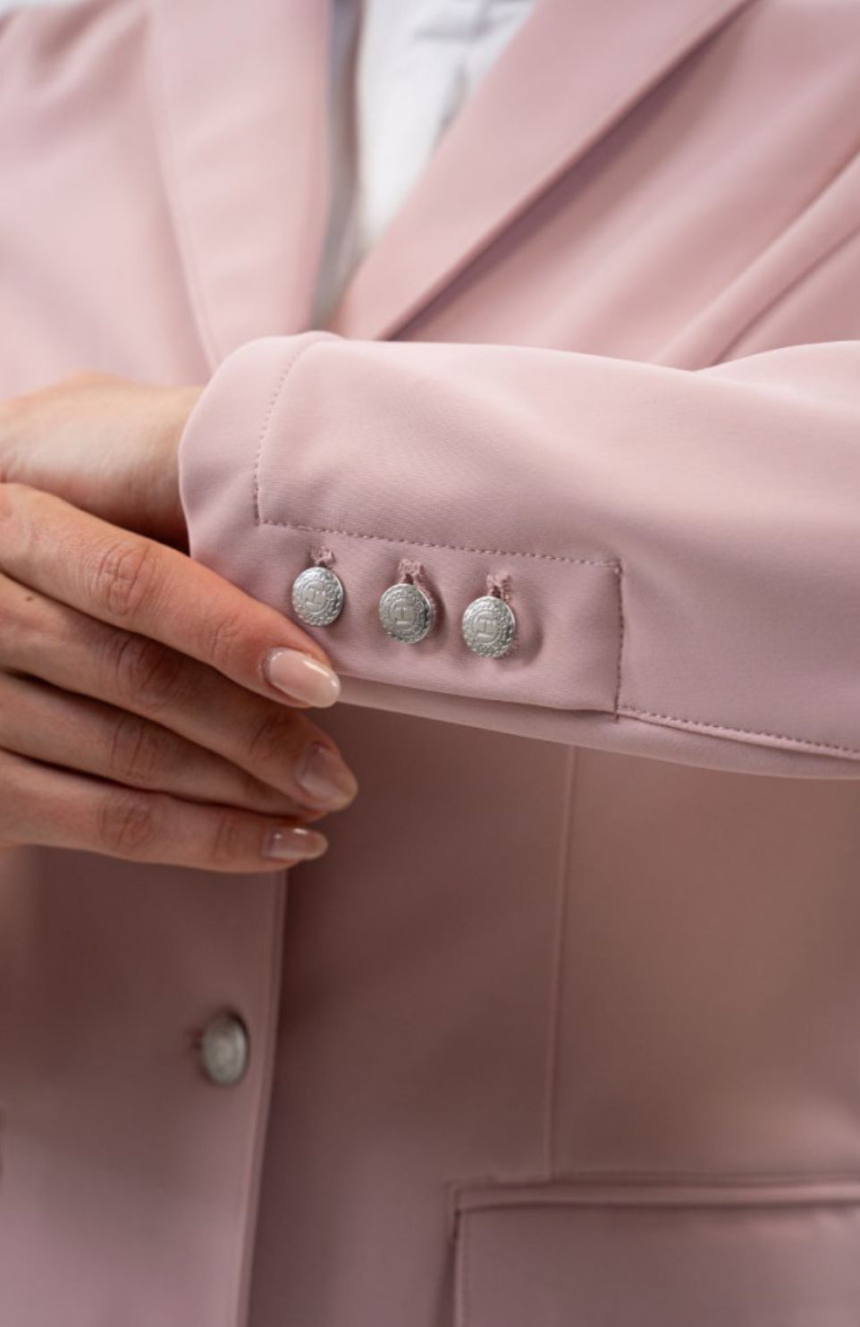 - Drei silberne Knöpfe mit Harcour-Gravur an den Ärmelabschlüssen